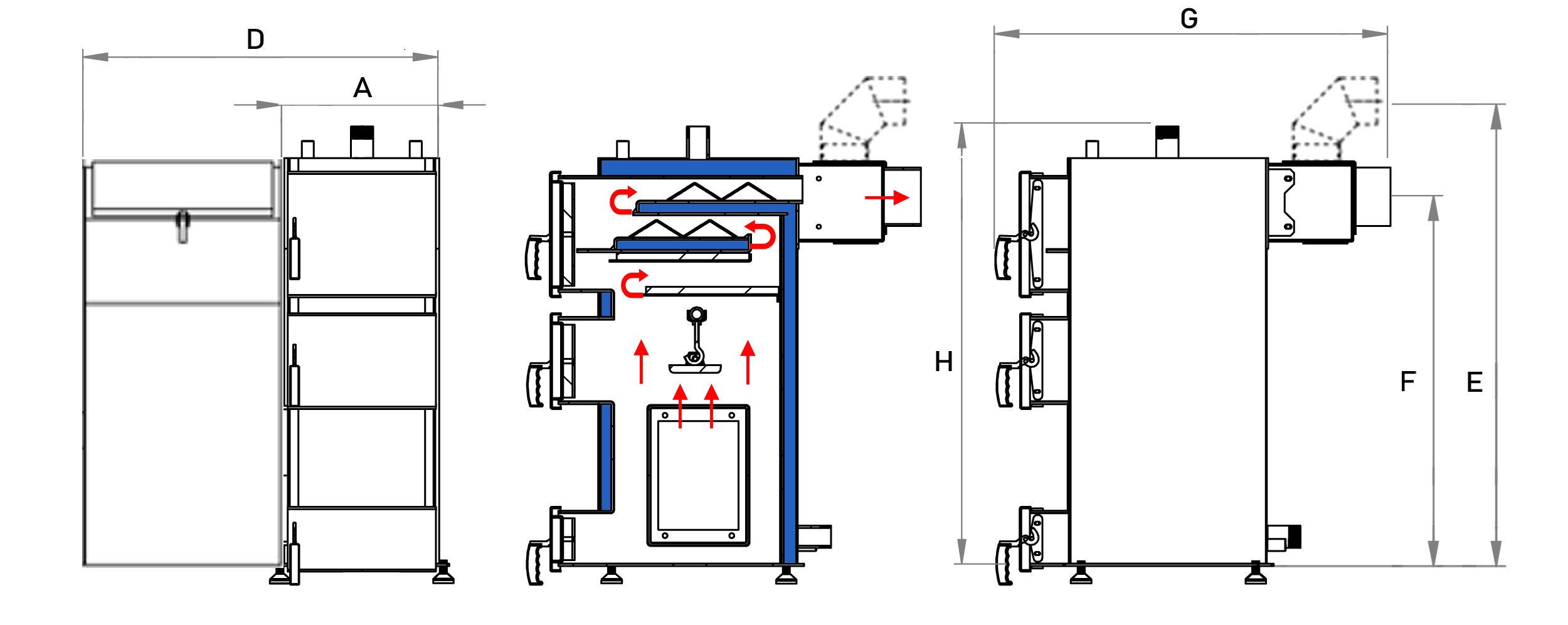 Kocioł KG 15kW klasyfikuje się do uzyskania dofinansowań z Urzędów Gmin i Miast. Kocioł ten jest kotłem górnokanałowym, jego wielką zaletą jest intuicyjna obsługa i dostęp do kanałów poprzez otwarcie przednich drzwiczek.